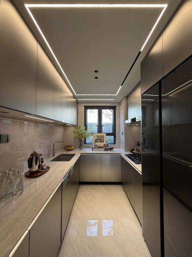 保利海玥外滩序Bund98配置拉得非常高,同价位段里几乎全部是顶配。厨房的部分采用了很多顶豪项目才会出现的嘉格纳(或同档次品牌,下同)三件套(灶具、油烟机、洗碗机),还有博世双开门冰箱的组合,铂浪高的水槽+龙头。