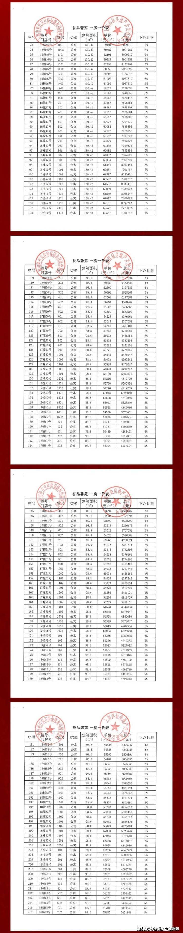 以下为项目完整一房一价表👇