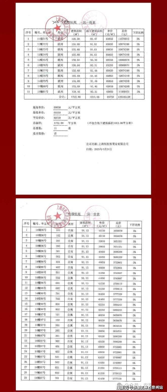 一房一价表如下: