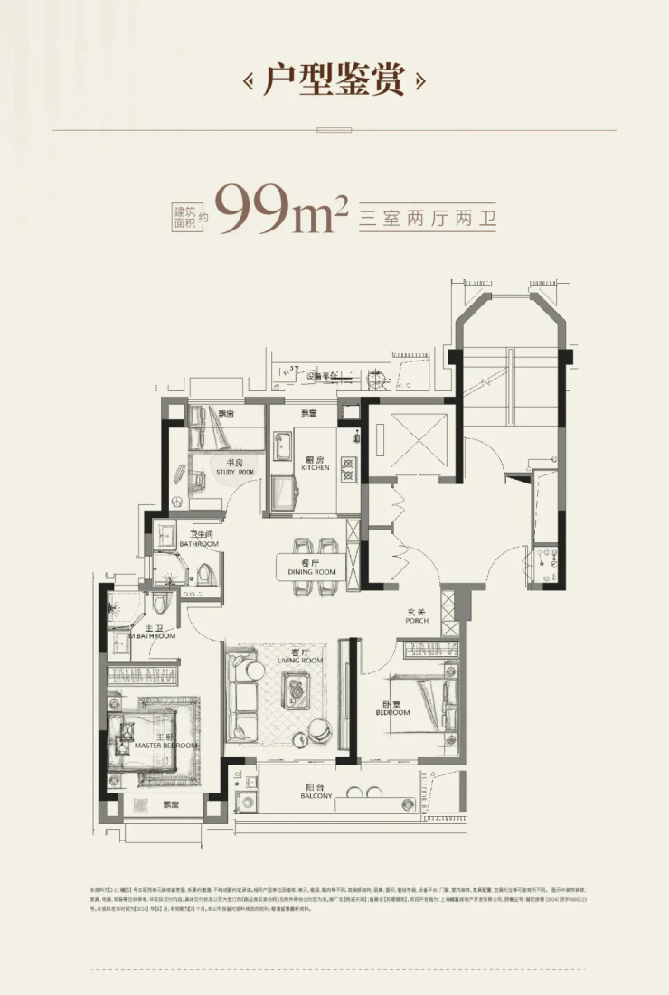 建面约99㎡经典飞机户型设计,南北通透,作息空间互不干扰;集约化过道+多飘窗设计,视觉向外延展性更大,整体户型开阔感更强;独立玄关+双卫配置,保证了业主足够的私密性和舒适度;南向次卧与阳台相连,使得室内尺度、采光及通透性都十分出彩。