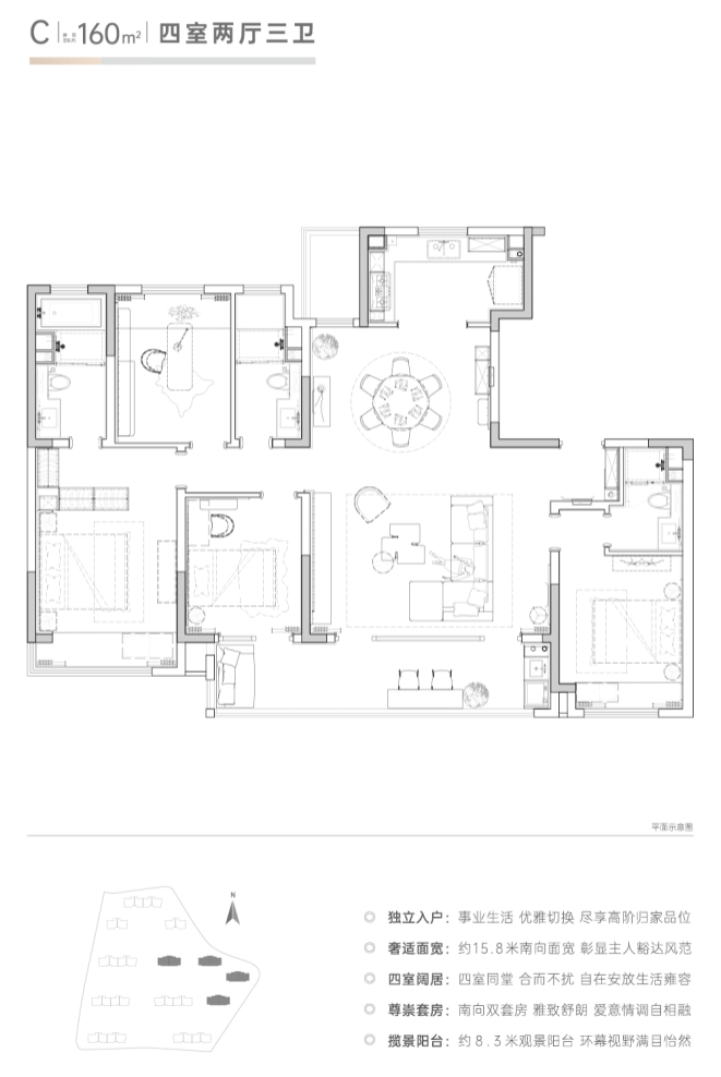 定制建面约122-160㎡滨水华宅,精选臻装品牌,南北通透布局,以奢适尺度和功能分区,重构空间生活秩序,满足高端改善居住需求。