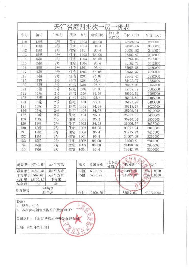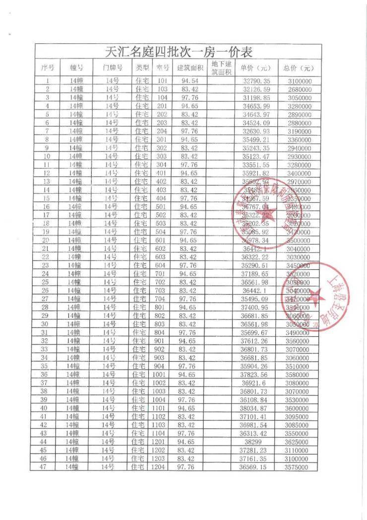 上期一房一价表发布:
