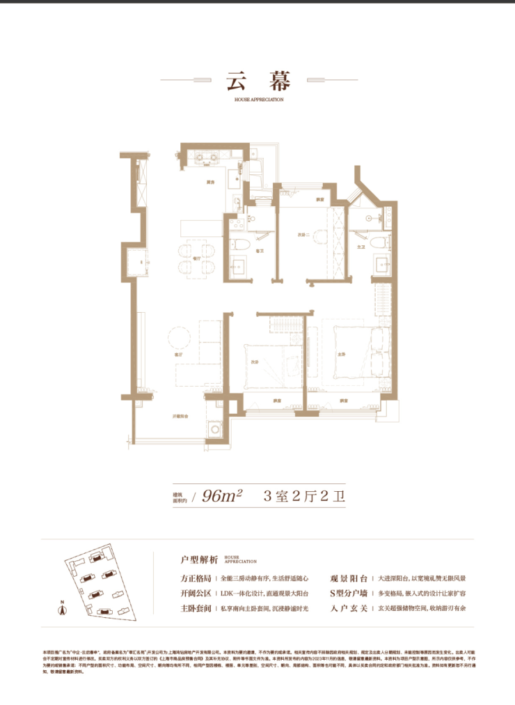 建面约96㎡3房2厅2卫▼
