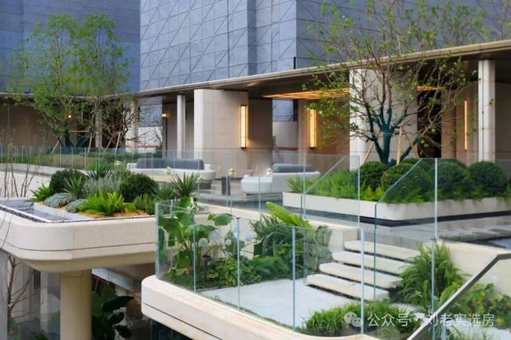 弧形石材工艺因其造价高、耗料多而闻名,而 招商序从门庭、游廊、转换厅、风雨连廊到下沉式庭院,一以贯之的弧形石材,形成了统一的设计语言 , 营造视觉上的柔和高级感, 招商序将这种传统豪宅的设计手法应用到了 700万级的产品之上,真的是降维打击。