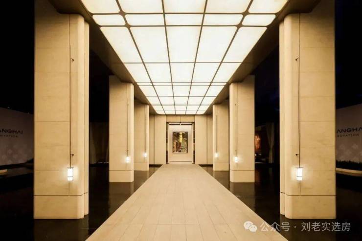 通过迎宾楼,便来到了约20米长的精神游廊 , 该精神游廊同源招商玺 “树宅相守”的设计手法,更致敬建筑诗人斯卡帕“以自然光感去创造时间驻留感”的理念 ,通过对光线、材质与空间的创新打造,营造充满宁静的归家场域。