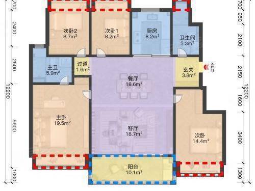 四房两厅两卫的布局,能做到两个房间朝南,主卧和南次卧的空间都很宽敞。