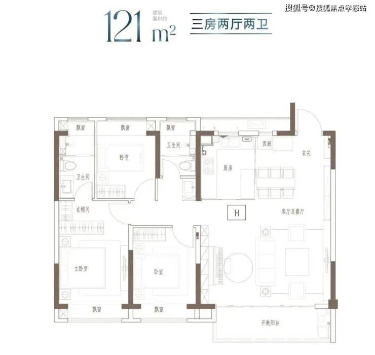 户型特点:3开间朝南,全屋阳光充足;L型厨房转角移门设计,最大化空间视野;四飘窗设计,通透空间享受;动静分区,亲密有度;套房式主卧,容纳私谧生活点滴;