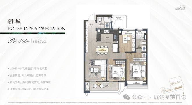 先来看项目主推建面约105㎡3房2卫:✅✅翎翠滨江售楼处电话:400-8787-740✅✅