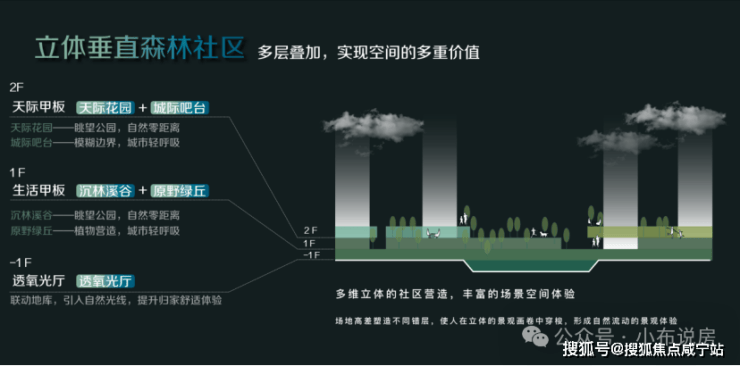 更颠覆性创新的是,它将自然向上延伸,构建出一套前所未有的立体社区: