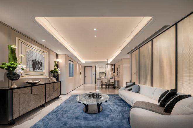 不同于市面上门是门,框是框,墙是墙,看房时“五颜六色”。外滩瑞府室内采用一体化设计语言,实现空间、色彩与材质的协调统一。比如