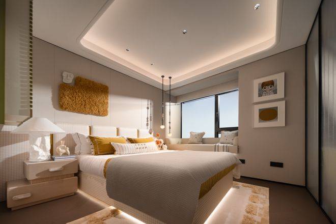 外滩瑞府售楼处电话:400-8787-740同样近乎等面宽的卧室尺度,让每个家庭成员都能拥有独立且舒适的休憩领地,三卧朝南的布局,让阳光成为所有人的平等馈赠,没有谁要为“主次”牺牲采光权。
