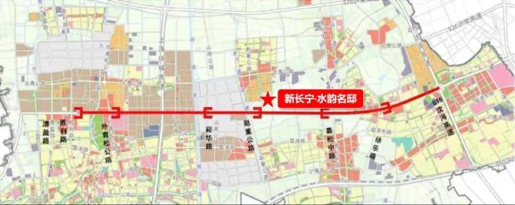 新长宁·水韵名邸预约热线☎:400-8080-420✅✅项目北侧直线约1公里就是示范区线赵重公路站(在建),向西可以直达青浦华为研发中心,向东2站即可到达前湾,3站直通虹桥枢纽!