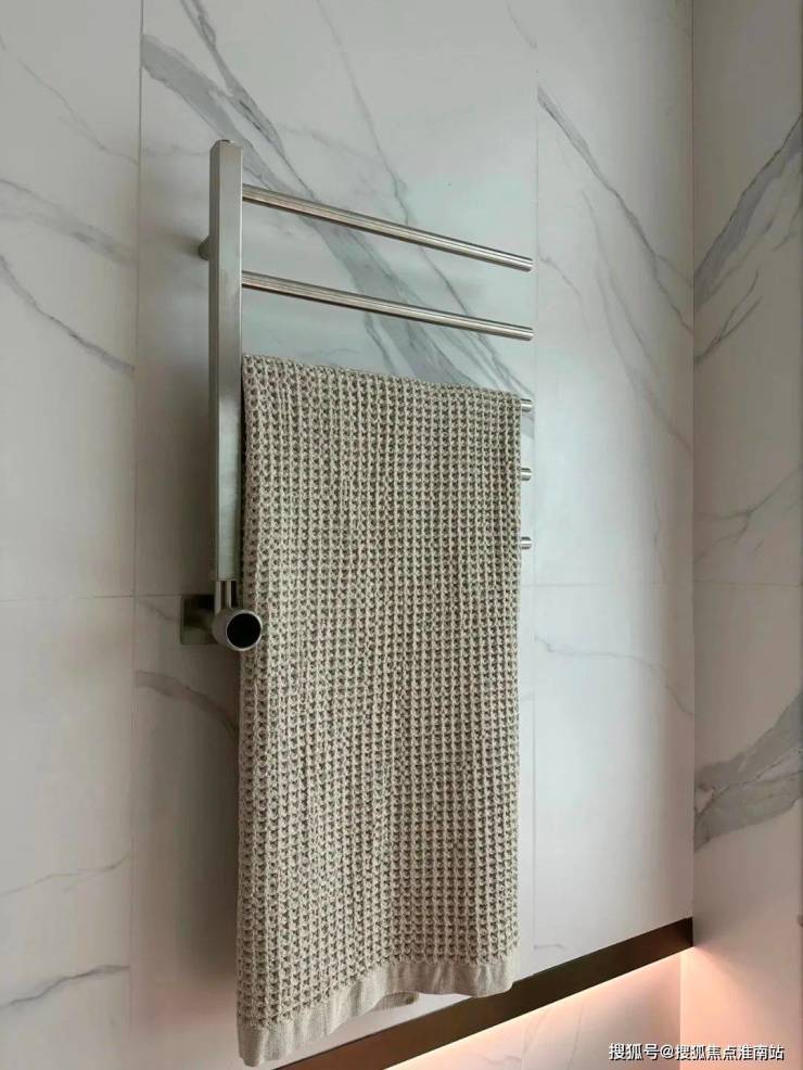 主卧卫生间配备的电热毛巾架简直就是遇到潮冷节气的“福音”,让毛巾、内衣都能够提前加热干燥。