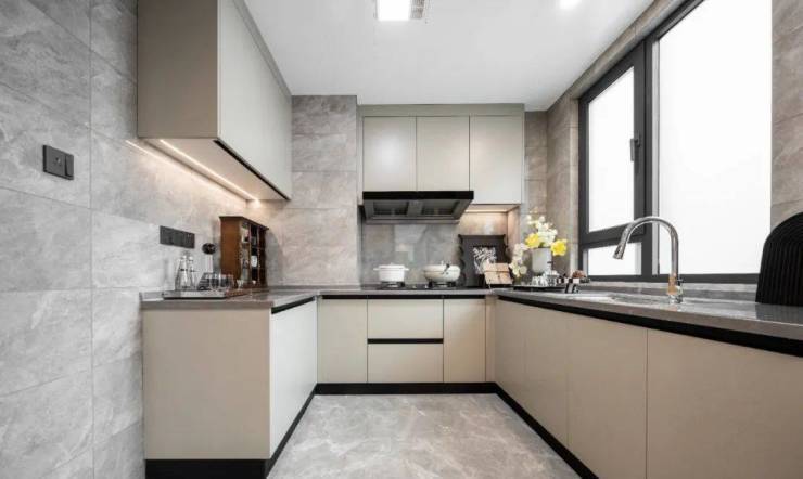 厨房尺度也进行了升级,如此宽敞的U型厨房,三五好友聚会时,即便两个人同时煮饭炒菜也会显得非常从容。