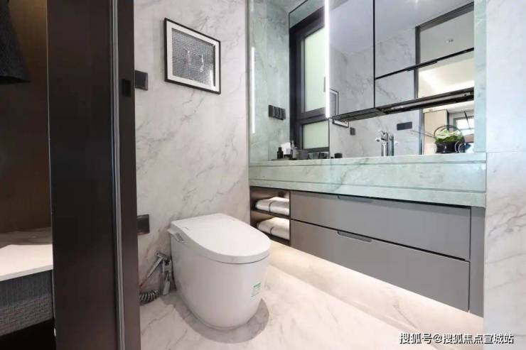 卫生间方面, 高仪 的洗脸盆、龙头、恒温花洒、智能马桶等,其中主卫的顶部花洒采用隐藏式设计,精致感十足。
