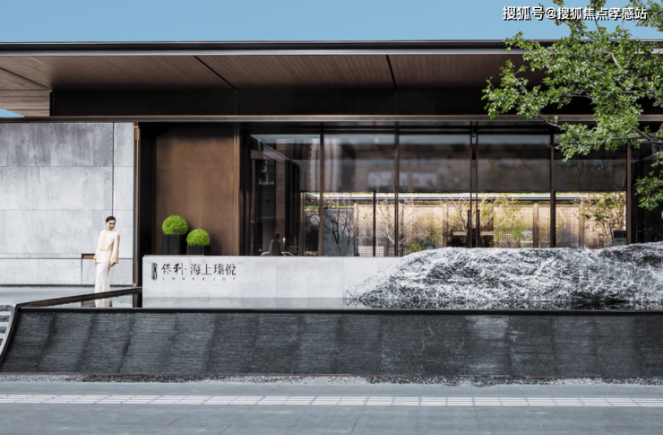 保利·海上瑧悦以东方门第风雅为灵感, 打造约100米奢阔门庭 ,融合仪制化门头与车马集院,彰显尊贵归家礼序。门庭礼院、丹华水院、山水隐园、山林雅筑、雅苑归境的五进礼序层层递进,演绎东方雅仕精神。