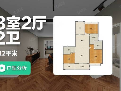 112㎡ 3 房 2 厅 2 卫:三开间朝南,南北通透,全明格局