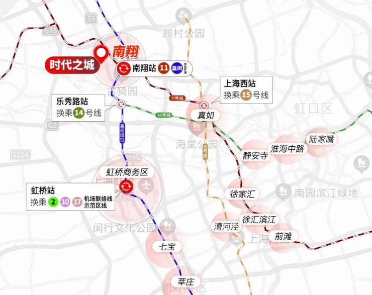 时代之城所拥有的11号线+嘉闵线,覆盖面积极广: