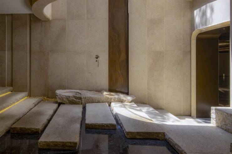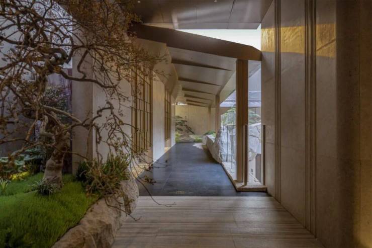 越秀外滩樾的公区庭院非常精致,其精心打造充满禅意的山水庭院。