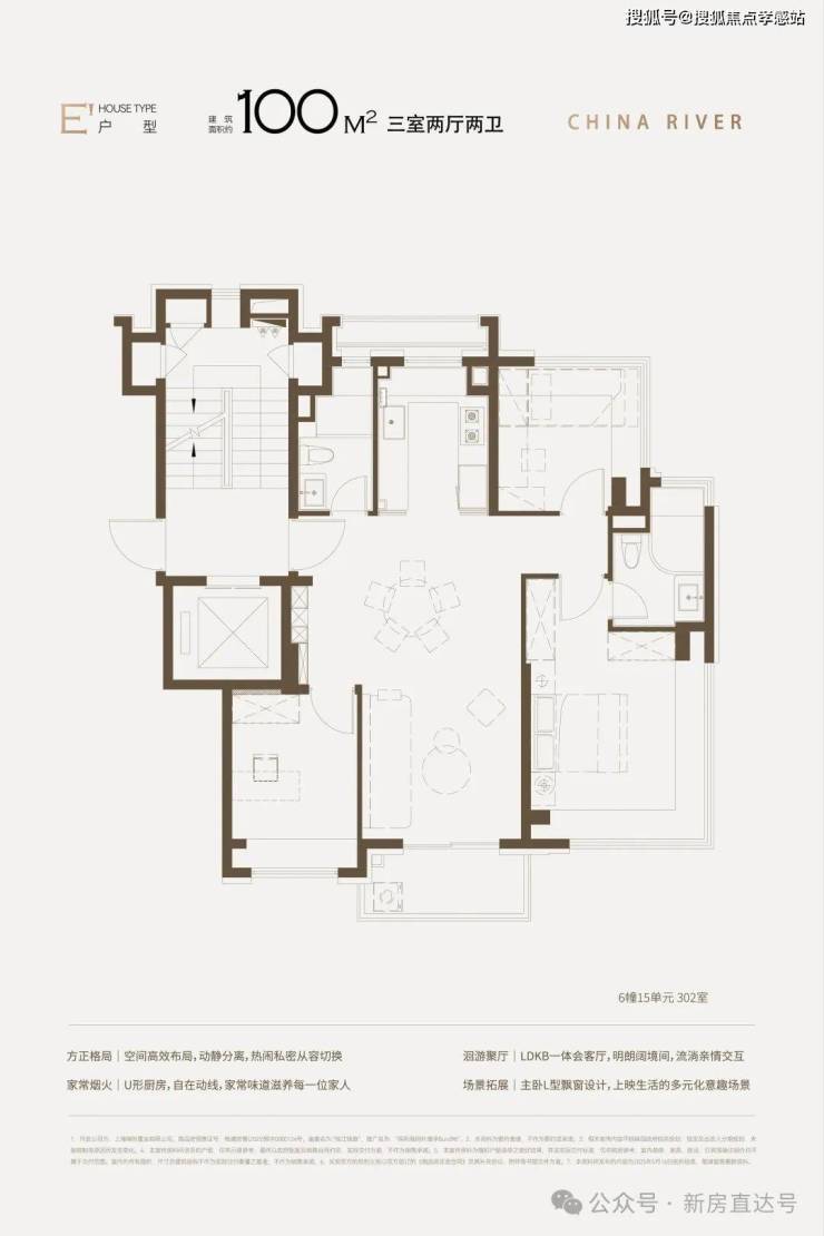 建面约100㎡3房,采用同级罕见四叶草布局,三个房间相对独立,互不打扰;南北通透;重要的是几乎无浪费面积,使用率高。