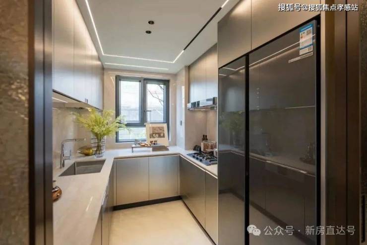 厨房在U型基础上还能容下双开门冰箱。