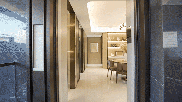 大部分样板间,天花板、墙面、地面在颜色和风格上存在割裂感,但在bund98我能感受到色系的相对统一,比如玄关收纳的木饰面,与墙面、地板几乎一个色系,营造一气呵成的视觉观感,传递出一种低调内敛的豪华感。