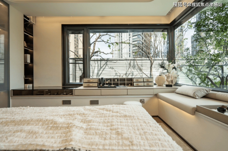 约270°飘窗除了打开景观视野,铺就大床之外,还可是私人观景台,还能承载猫咪慵懒的午后,更能成为收藏品、艺术品的摆台,样板间为行业打开了思路,它可以摆放业主迷恋的古董、名表等,也可陈列新生代执着的跑鞋、盲盒等。