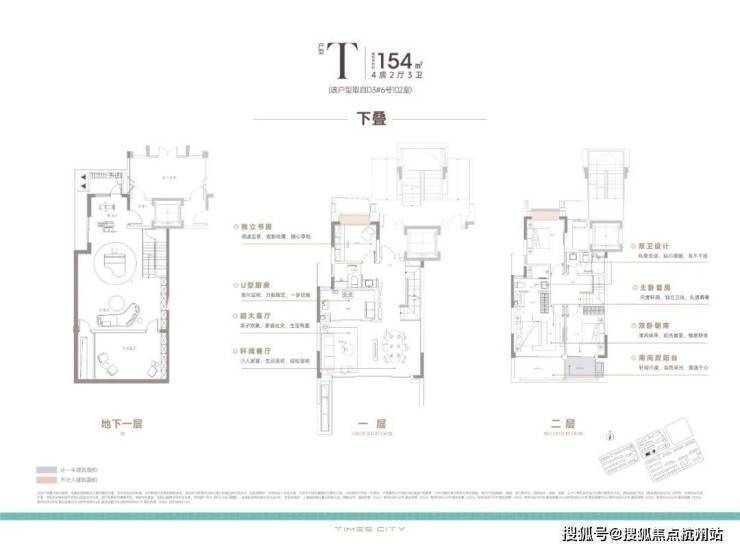 174m²下叠,挑高的宽绰地下室+公共绿地,真正的别墅享受: