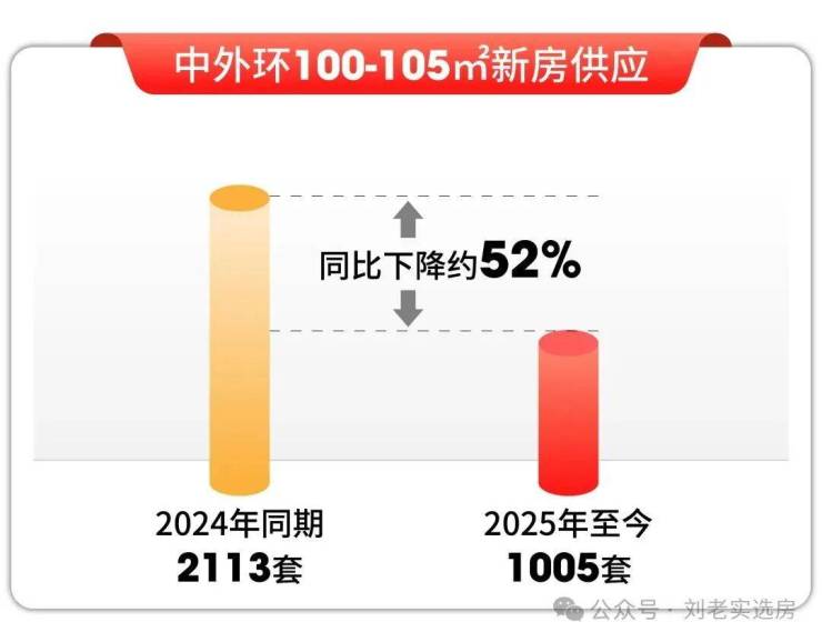 据数据统计2025年至今上海中外环建面约100-105㎡新房供应了1005套,去年同期已经供应2113套,同比下降约52%。