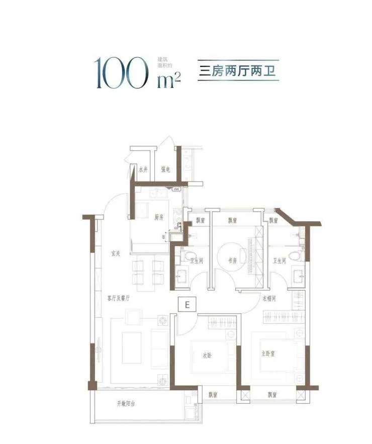 建面约91m²的这个户型,3开间朝南,全屋阳光充足;L型厨房转角移门设计,最大化空间视野;四飘窗设计,通透空间享受;动静分区,亲密有度;套房式主卧,容纳私谧生活点滴。