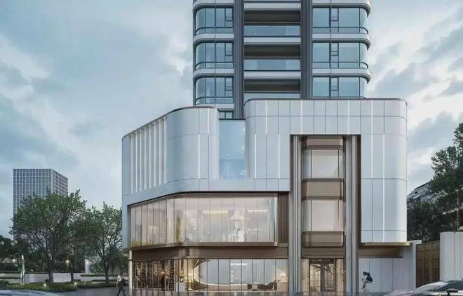 顶部鎏金塔冠,曲面拉伸铝网包裹古铜质感金属铝板,革新板块城市界面,也形成独具观赏性、标志性的地标重塑上海天际线轮廓。
