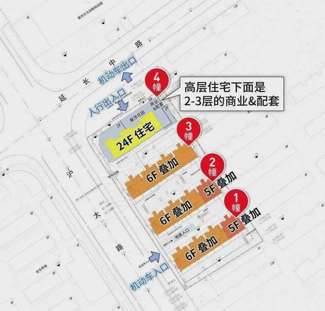 高层住宅下面是2-3层的商业&配套。