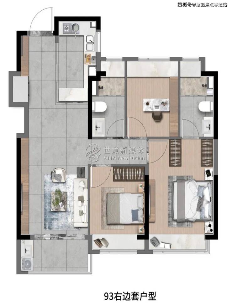 高层建面约93㎡3房2厅2卫