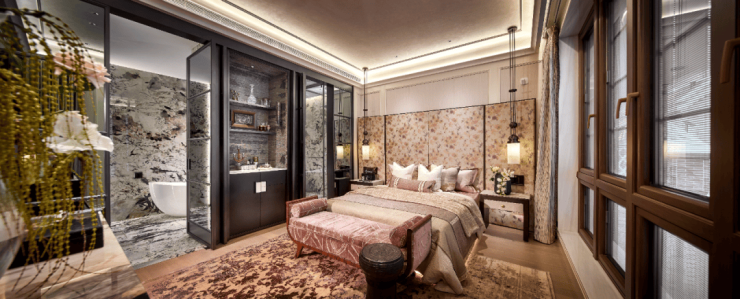 全套房格局:二层、三层为家庭居住区,每个房间都宽敞舒适。二层每间套房均超4m大尺度开间。三层的整层主卧套房奢华酒店式设计,步入式衣帽间与独立卫浴极尽奢华,更外接星空露台,观景小酌极尽惬意。