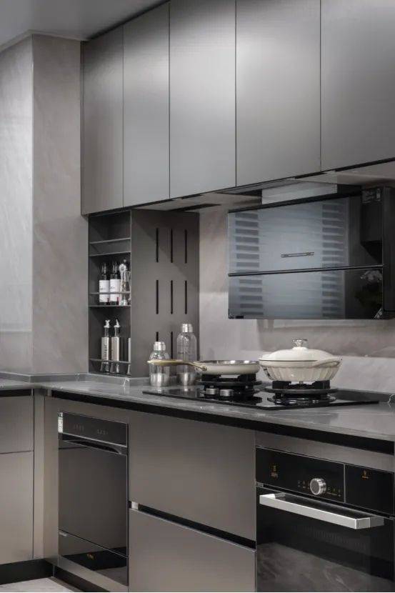 家的温情欢聚场:在餐厅区域,我们安置了一件餐边柜,其透光台面设计采用了雪山飞狐奢石材质,该餐边柜在收纳和储物功能上表现出色。