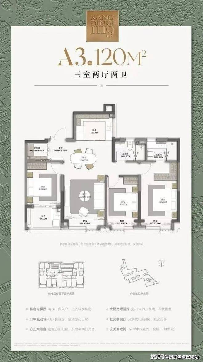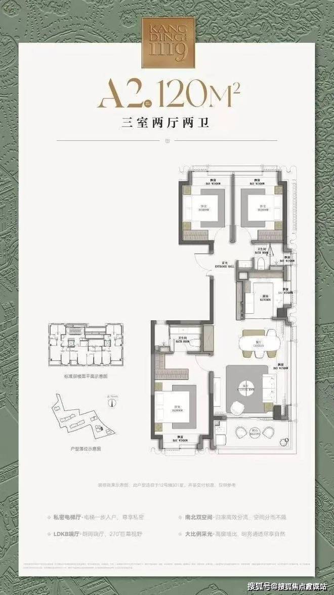 建面约120㎡3房2厅2卫▼