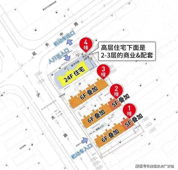 此外,小区实现完全人车分流,小区一共3个出入口,其中车行出入口可直接到达地库,车辆无需在小区内穿行,实现了人流与车流的完全分离。