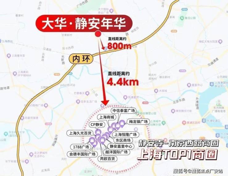 【大华·静安年华】项目可谓双王炸区位,直线800米贴脸静安内环,一脚油门就能杀进上海城市动脉,畅达全市核心节点;约4.4公里直插静安寺-南京西路心脏,直接把全上海顶流的繁华,变成你家的「日常生活」。