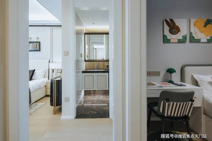 主次卧+客厅三开间朝南,餐客厅一体化设计,主卧套房设计,卫浴、衣柜、卧室层层递进,既有空间的尺度感,又有生活的舒适性,卫浴还是全明设置,极大提高生活的舒适度。