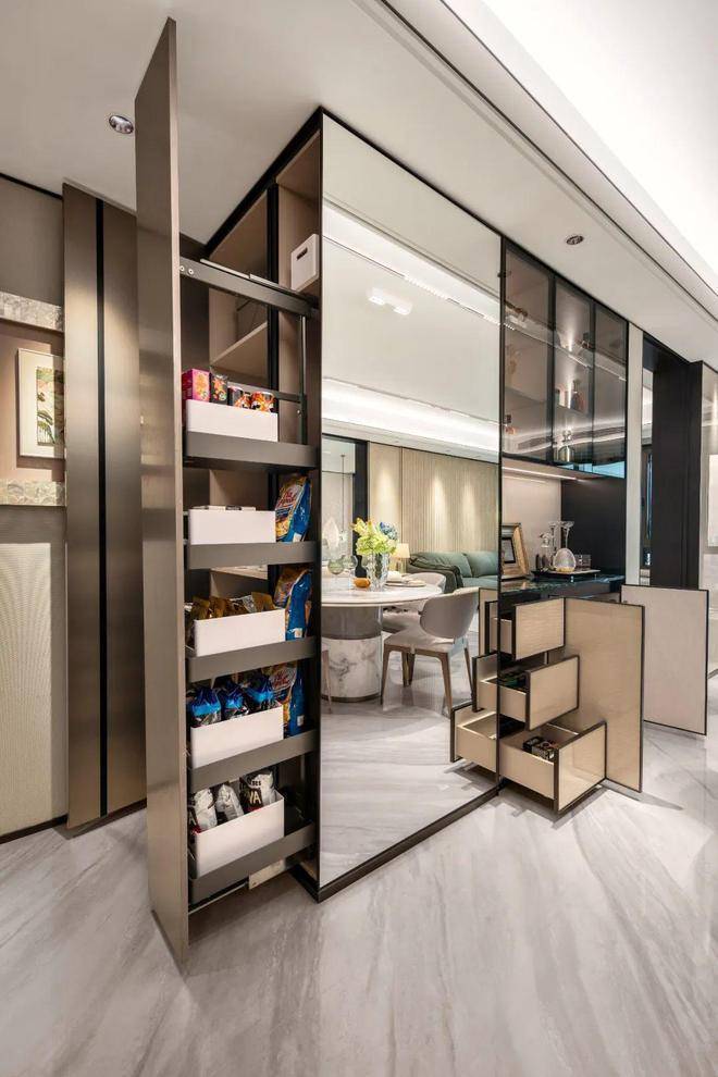 “女本位”视角的设计细节,不是单纯的考虑去便利女性日常习惯,也考虑到女性在家务工作中的便利,一个典型代表就是建发海宸天花板级别的收纳体系。