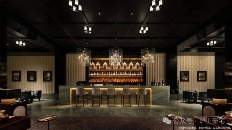 建筑面积约1500m²恒温泳池会所及落差达约10米的水幕下沉式园林的打造,在奢石、臻材等元素的空间应用中,让显贵世家的社交场景,相映于粼粼碧波的柔光之中,于方寸之间游离世外。