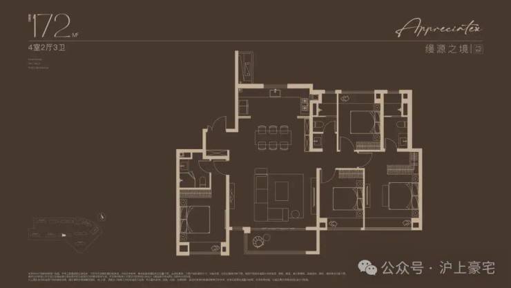 南山璞缦✅✅售楼处电话:400 - 1010 - 064✅✅建面约172㎡4房户型,多娃家庭的进阶之选!奢阔尺度尽显家族气度!2梯2户, 子母双开门礼序入户,私密尊崇门厅;约16米四开间朝南,搭配约6米尺度横厅,揽四时风景入怀。