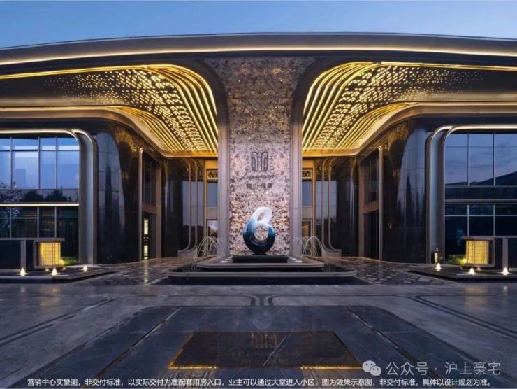 墙体采用约雪山蓝石材,搭配香槟色铝板,普拉达绿石材、安哥拉黑石材、真石漆保温一体板与大面积落地玻璃,叠水小品迎宾启幕归家礼序。景观雕塑,将“缦奢归璞”所追求的圈层礼制得以具象。敕造奢阔实景,境现嘉定主城高阶圈邻。