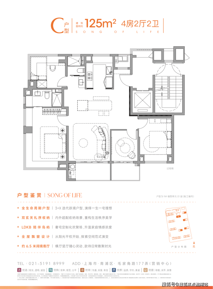 建面约125㎡全面升级迭代的四房户型,不止空间面积更大,且功能更复合、设计更合理、空间利用更高效。类一体一户设计,奢享独立明厅玄关,延伸生活的宽度;突破传统桎梏,约13.5米南向四开间大面宽,实现IMAX级采光自由;五星级酒店式主卧套房,奢配独立卫浴衣帽间;当市场仍在讨论“几房几厅”时,它已率先在500万级总价段完成越级打击。