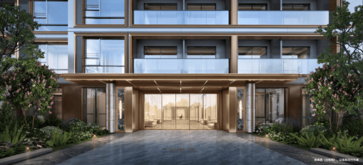 江湾金茂府的沿街展示面近70米,并巧妙融入奢石、铝板、水景、弧线等元素,用打造艺术品的手法铺就业主的归家动线,也焕新了淞南的城市界面。