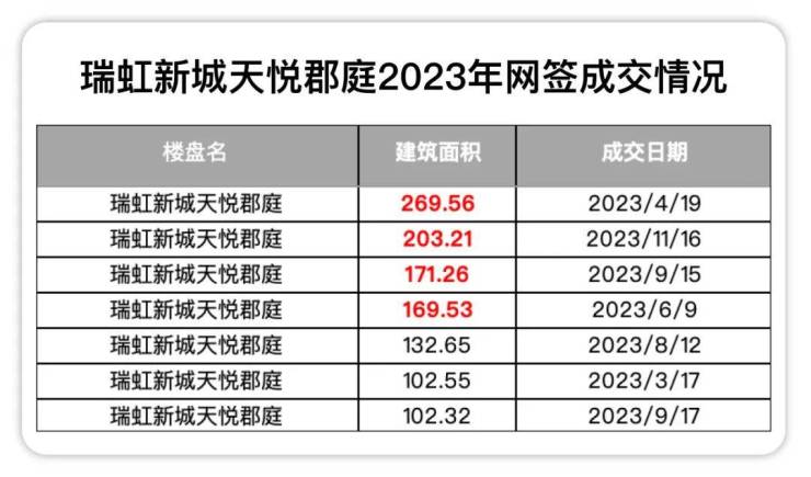 在2023年天悦郡庭网签了7套豪宅,居然有超过一半的成交是建面约150㎡以上的大户型,改善置业俨然成为市场的主流需求!