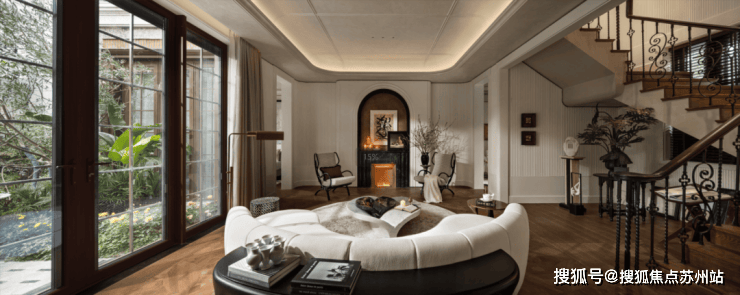 风貌别墅因历史形态限制,采光常受局限。保利·外滩序突破市面上风貌别墅的面宽局限,餐客厅约9.4米面宽,开阔的采光面搭配大面积玻璃窗,还能将室外的花园景致更好地引入室内,实现室内外景观的无界互通。