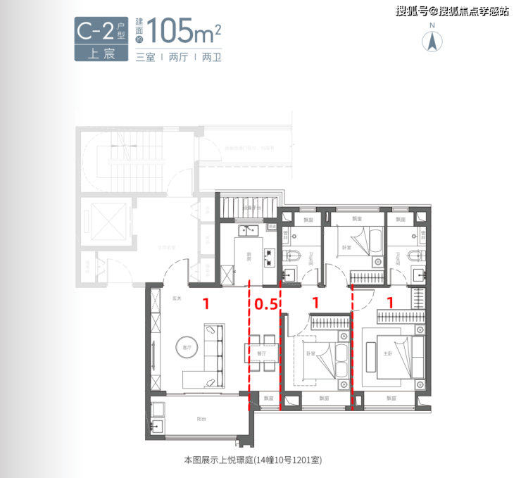 在3开间朝南的基础上,其新开发了0.5,意味着更大的采光面、更强的通透性、更舒适的居住体验。约5.5米宽的横厅,再加上约8㎡的阳台,使得公共区域尺度感十足,功能性也更强。