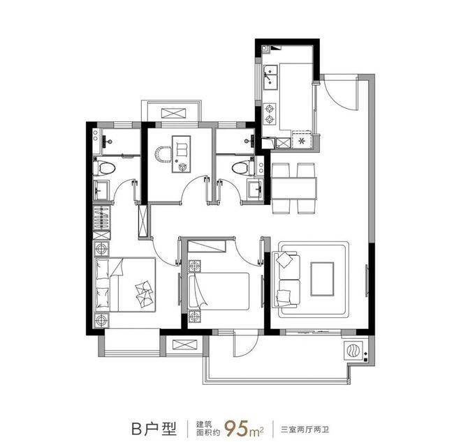 95平(三房两厅两卫):235-264万