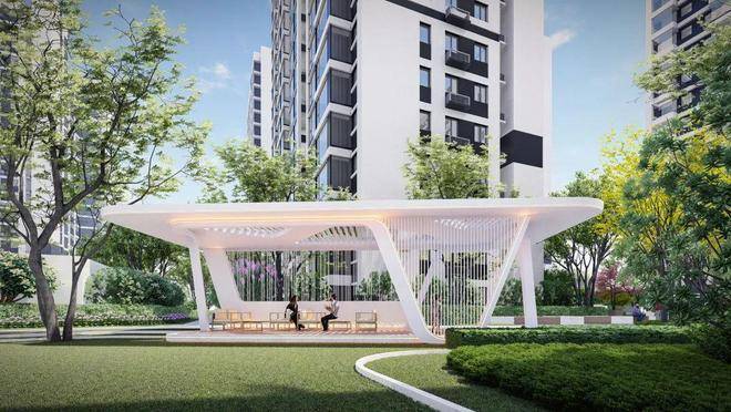 六园景观组团分布在不同楼栋之间,由高中低三层次景观树种搭配而成,让业主在不同时节归家,都有四季如春的感觉,与自然绿意相互触碰。